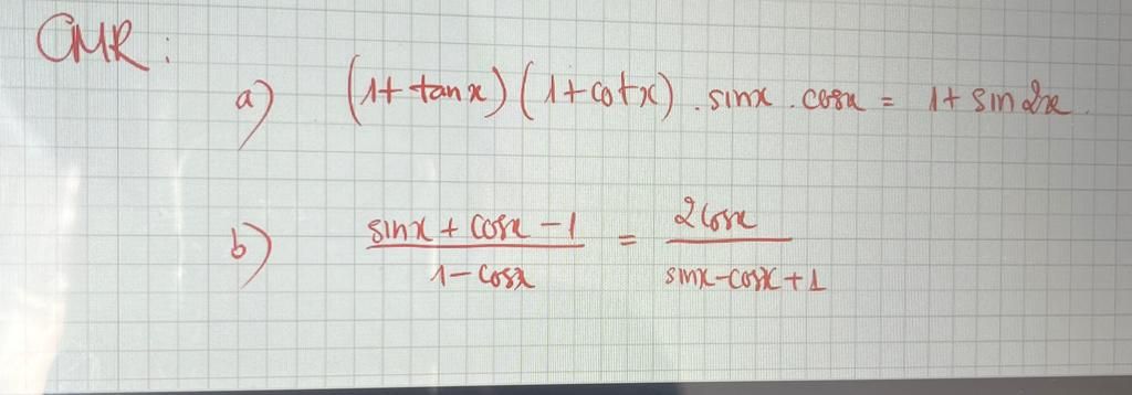 `a) VT = (1 + tan x)(1 + cot x) . sin x . cos x`
