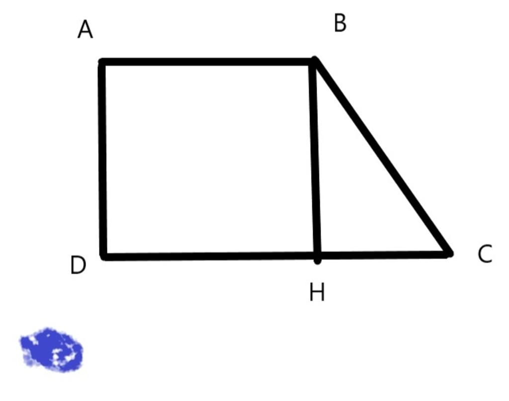 Diện tích hình thang $ABCD$ là $\frac{(AB + CD) \cdot BH}{2}$.