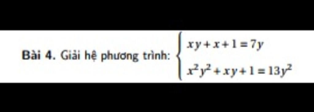 `{(xy+x+1=7y),(x^2y^2+xy+1=13y^2):}`
