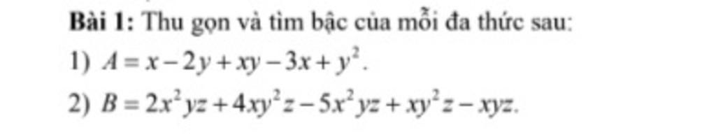 `B=2x^2yz+4xy^2z-5x^2yz+xy^2z-xyz` .