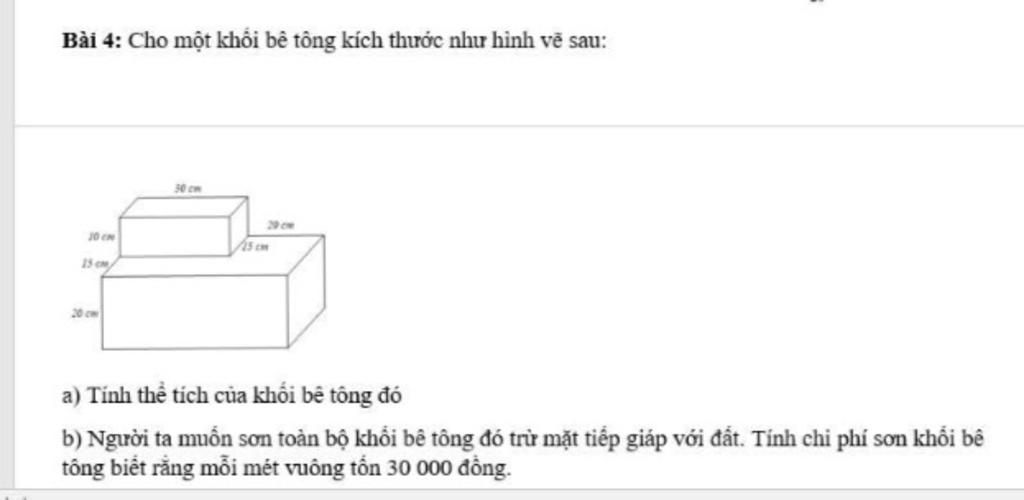 Diện tích cần sơn ở khối bê tông lớn là: