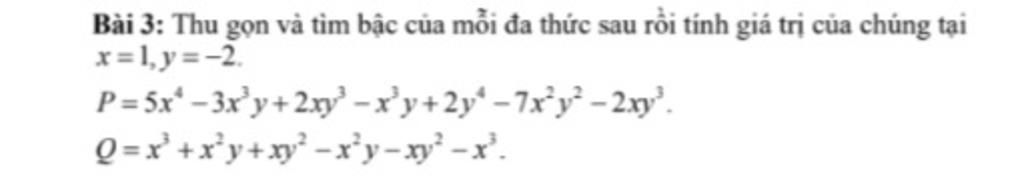 Thay `x=1;y=-2` vào `P` sau khi thu gọn ta được `:`