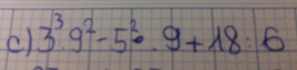 `c)3^{3}.9^{2}-5^{2}.9+18:6`