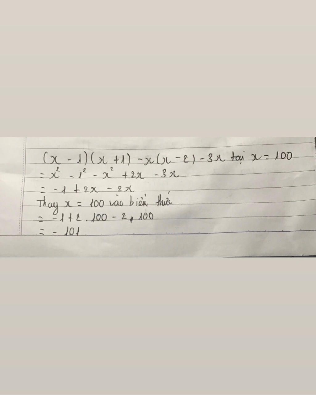 Thay `x = 100` vào `-x - 1` ta được: