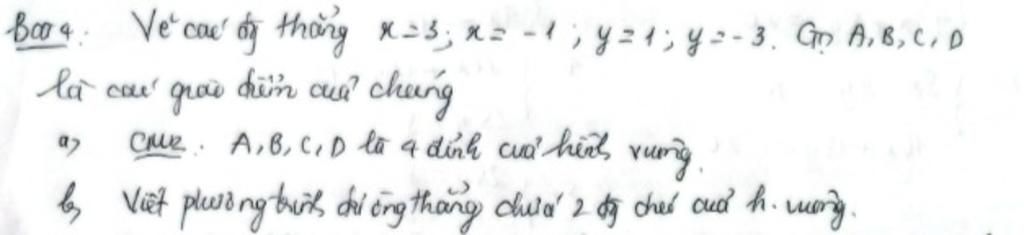 Boo4: Ve cave oy thang x = 3; x = -1; y = 1; y = -3. GD A, B, C, D