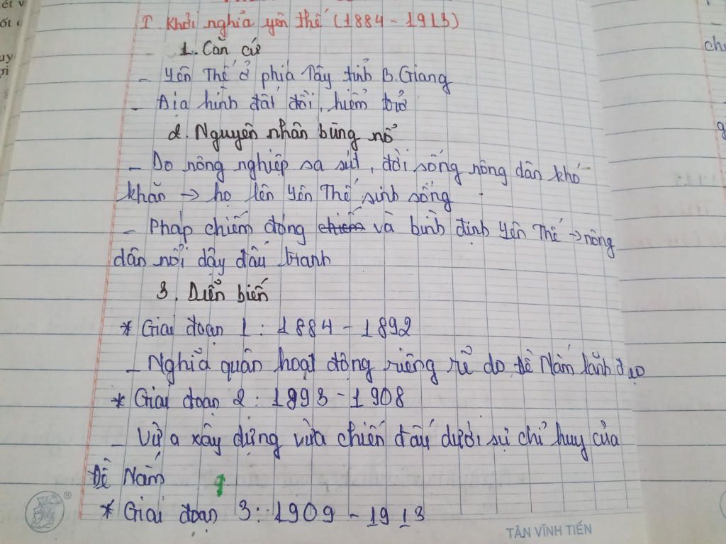 6)Khác với cuộc khởi nghĩa khác trong phong trào Cần Vương ,phong trào chống Pháp ở Yên Thế không phải do một số người hoặc một cá nhân văn thân,sĩ phu phát động,tập hợp mà một loạt các cuộc khởi nghĩa nhỏ lẻ do nhiều thũ lĩnh địa phương cầm đầu