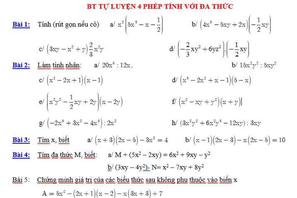 BT TỰ LUYỆN 4 PHÉP TÍNH VỚI ĐA THỨC