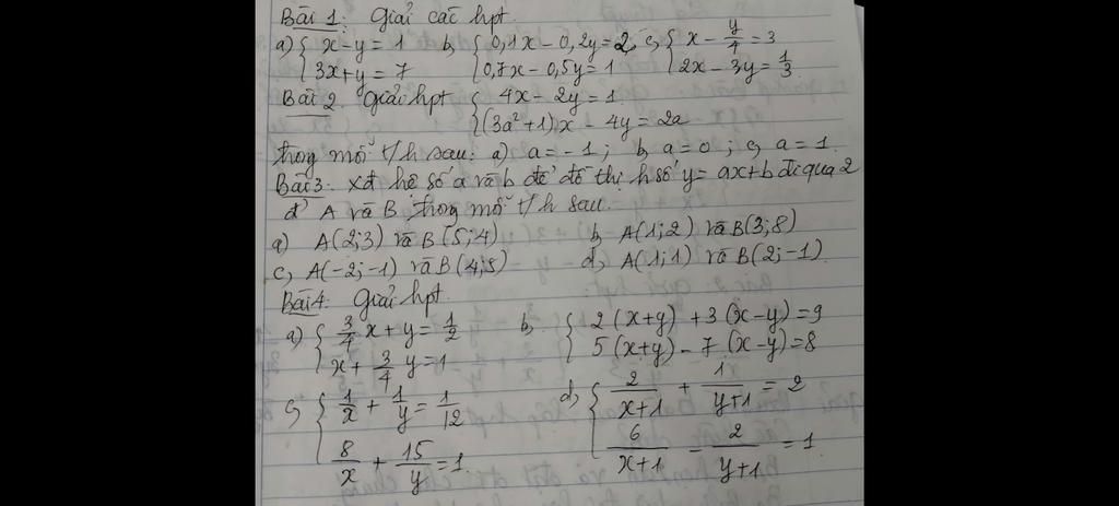$\iff \begin{cases} 4u + 2v = 4 \\ 6u - 2v = 1 \end{cases}$ (Nhân phương trình thứ nhất với $2$)