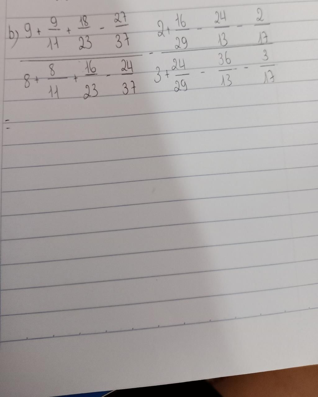 `b) (9 + 9/11+ 18/23- 27/37)/(8 + 8/11 + 16/23 - 24/37) - (2 + 16/29 -24/13 - 2/17)/(3 + 24/29 - 36/13 - 3/17)`