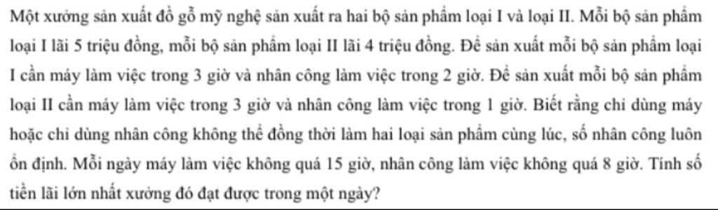 Vậy số tiền lãi lớn nhất xưởng đạt được trong ngày là `23` triệu đồng