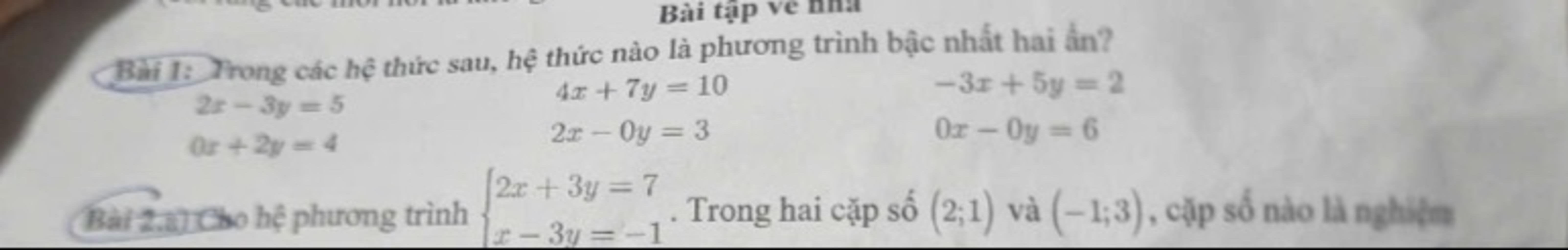`->` hệ thức 2x-3y=5; 4x+7y=10; -3x+5y=2 là các phương trình bậc nhất 2 ẩn