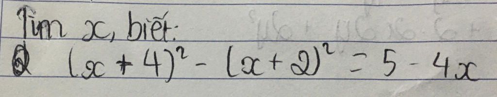 `(x+4)^2 - (x+2)^2 = 5 - 4x`