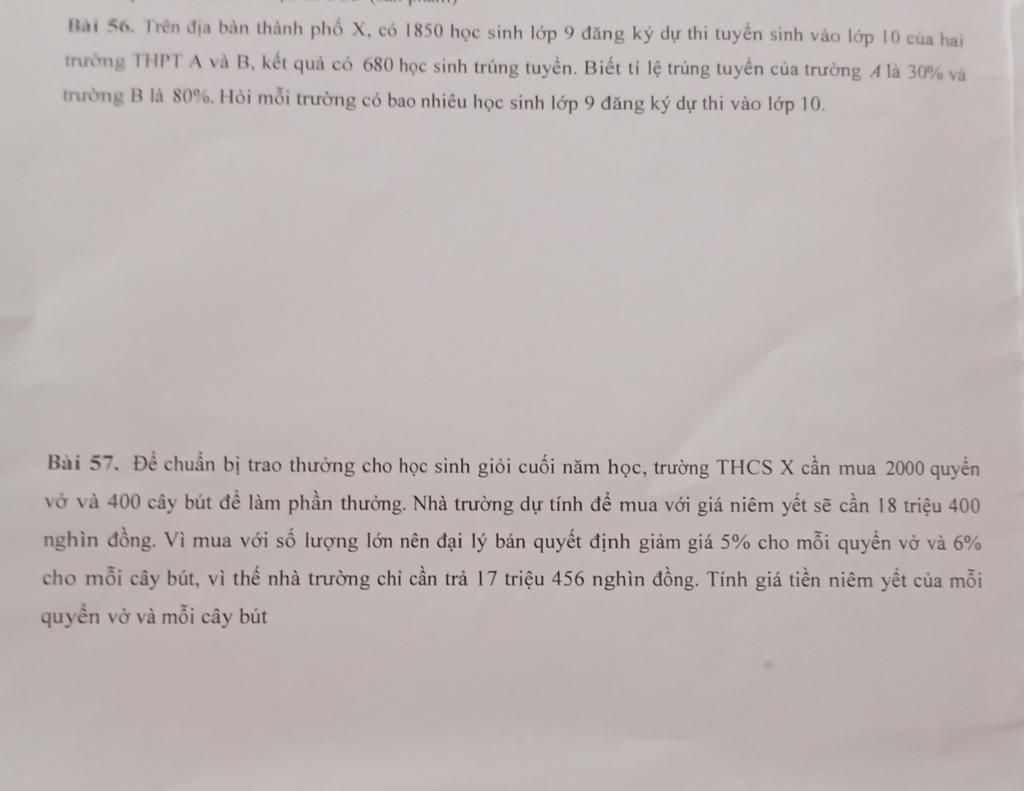 Vậy số học sinh đăng ký dự thi vào trường A là 1600 em, vào trường B là 250 em.