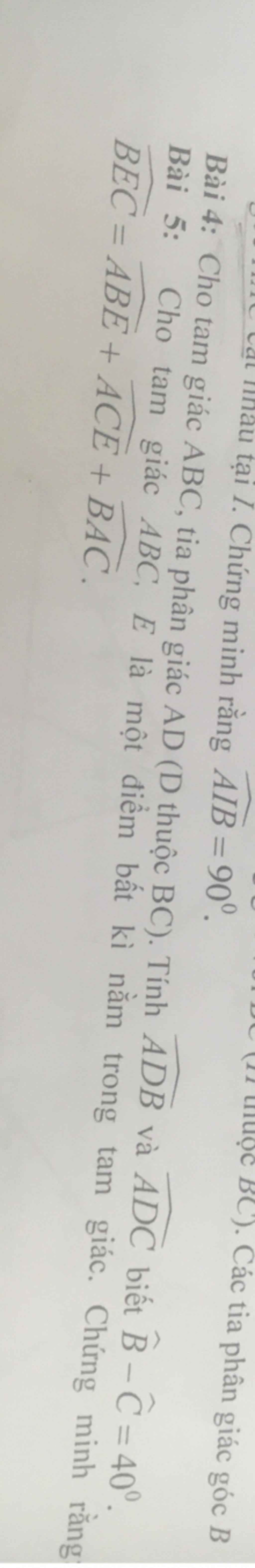Mà $\widehat{ABC} = \widehat{ABE} + \widehat{EBC}$ và $\widehat{ACB} = \widehat{ACE} + \widehat{ECB}$.
