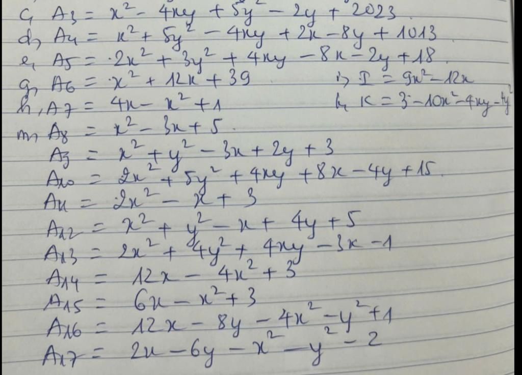 e, A5 = 2x² + 3y² + 4xy - 8k - 2y+18