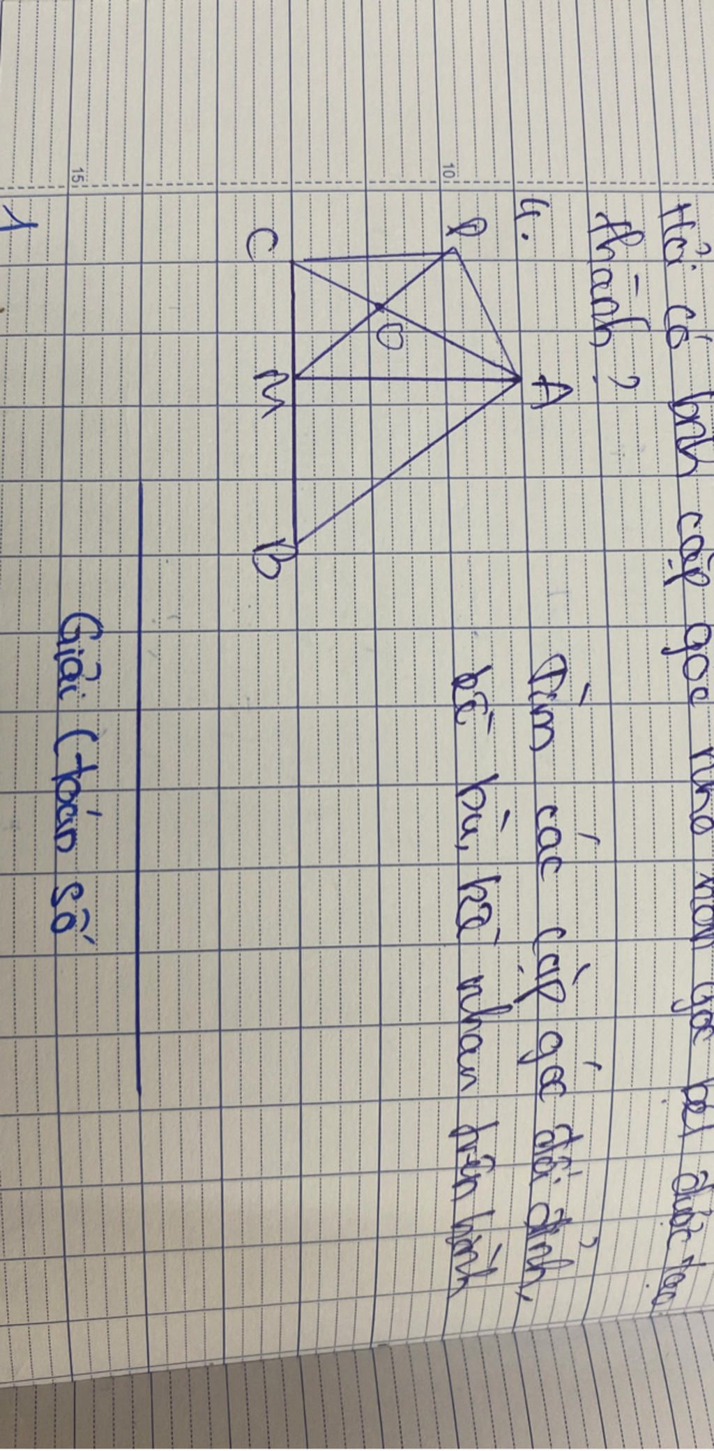 Câu hỏi: tìm các cặp góc đối đỉnh kề bù, kề nhau trên hình. Giúp e với ạ, cần gấp. Em cảm ơn