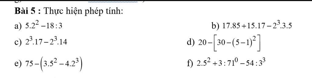b) 17 . 85 + 15 . 17 - 2^3 . 3 . 5