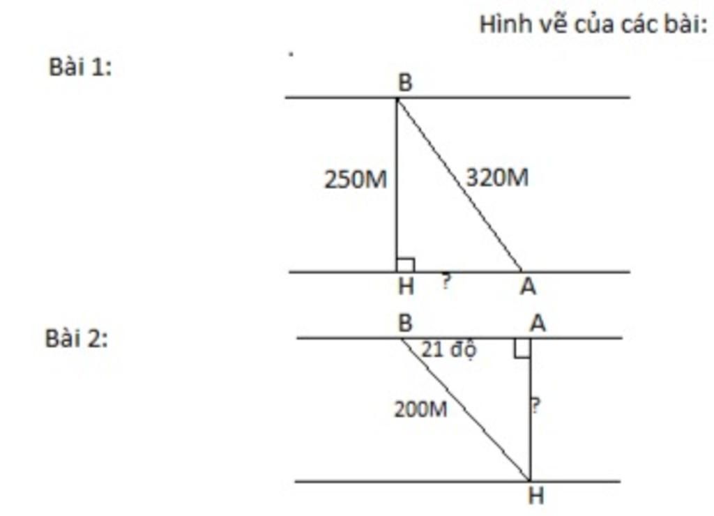 Bài1: Một khúc sông rộng khoảng 250m. Một chiếc đò chèo qua sông bị dòng nước chảy xiên nên phải chèo khoảng 320m mới qua được bờ bên kia. Hỏi dòng nước đẩy chiếc đò lệch đi bao nhiêu m ?