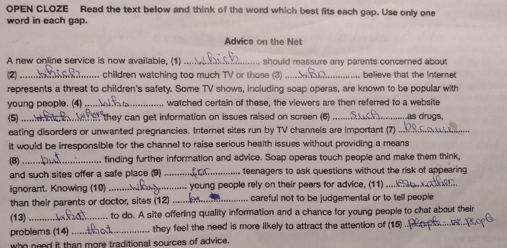 Câu 14 when that cũng được nhưng chỉ điền that khi bí từ vì lý thuyết that có thể thay cho mọi mệch đề quan hệ còn ở đây when dùng để chỉ thời điểm mà những người trẻ tuổi trò chuyện về vấn đề của họ