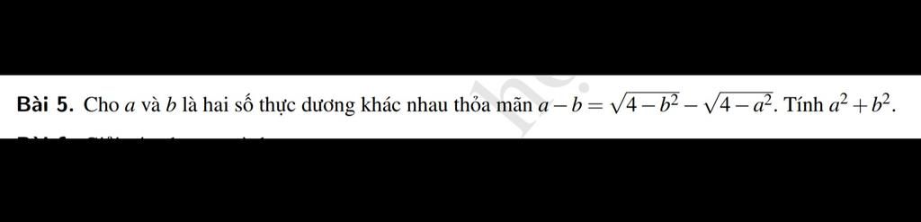 Vì $a, b$ là hai số thực dương khác nhau $\to a^2\ne b^2\to a^2-b^2\ne 0$