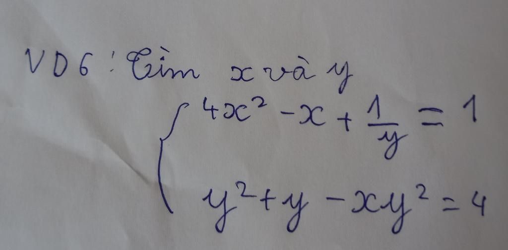 $\to \begin{cases}4x^2-x+\dfrac1y=1\\1+\dfrac1y-x=\dfrac4{y^2}\end{cases}$