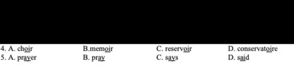 `4. A` (âm /ai/, còn lại âm /a:/)