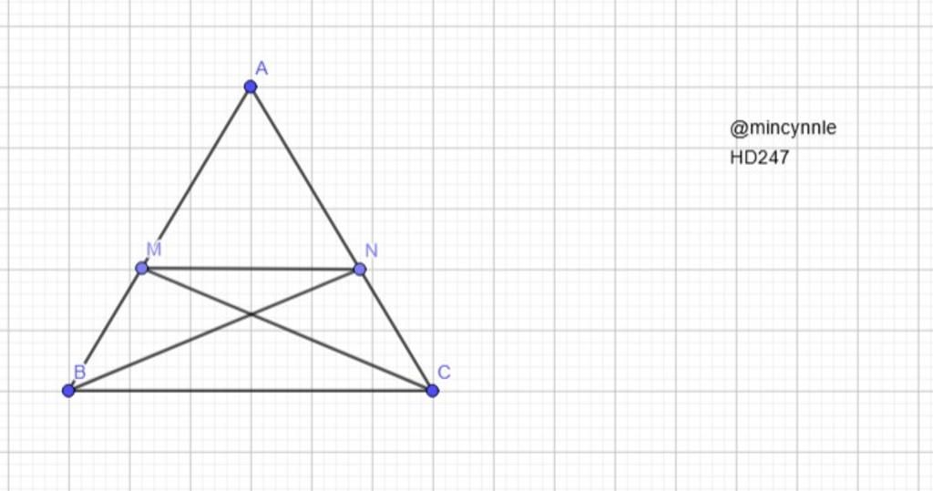 Cho tam giác ABC cân tại A Trên cạnh AB AC lần lượt lấy điểm M N sao cho AM = AN Chứng minh rằng
