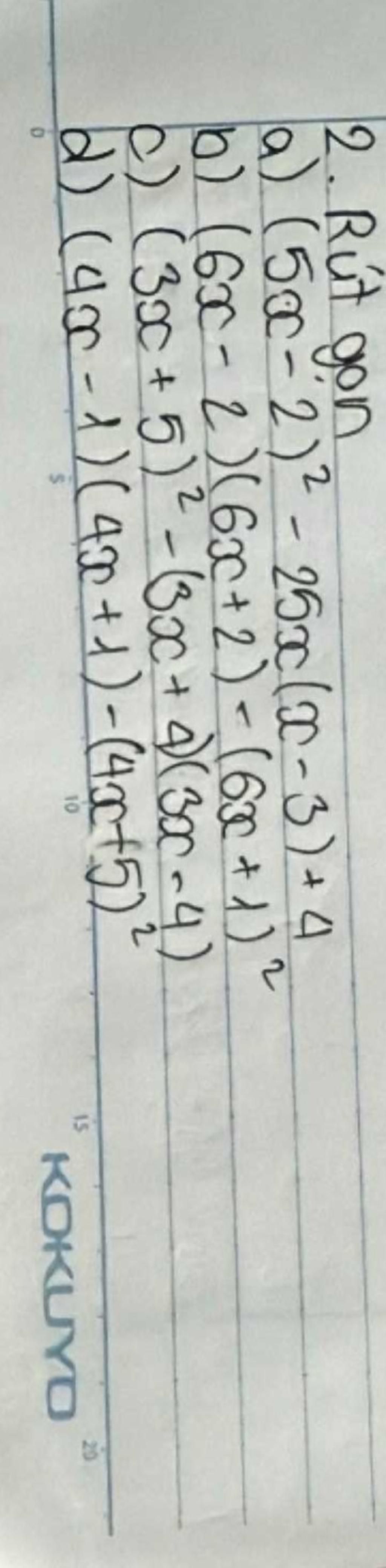 `a, (5x-2)^2 -25x(x-3)+4`