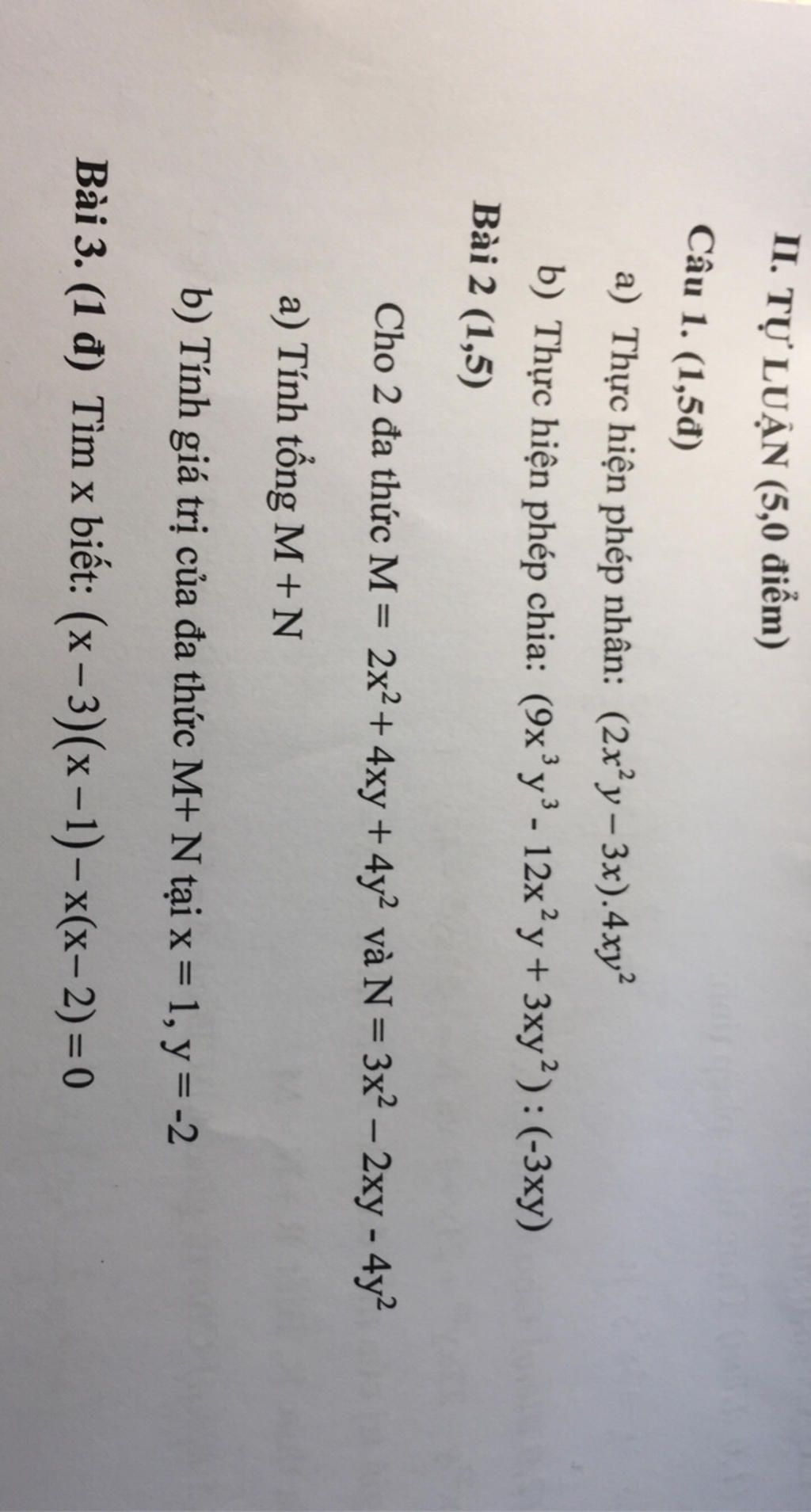 Cho 2 đa thức M = 2x2+4xy+4y? và N = 3x2 – 2xy - 4y