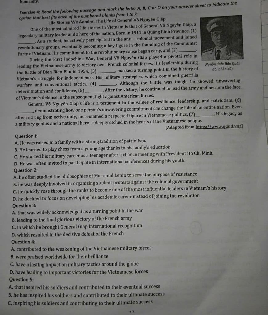6) C: As a military genius and a national hero to the Vietnamese people
