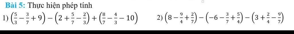 `=(5/3 + 2/3 - 4/3) - (3/7 + 5/7 - 8/7) + (9 - 2 - 10)`