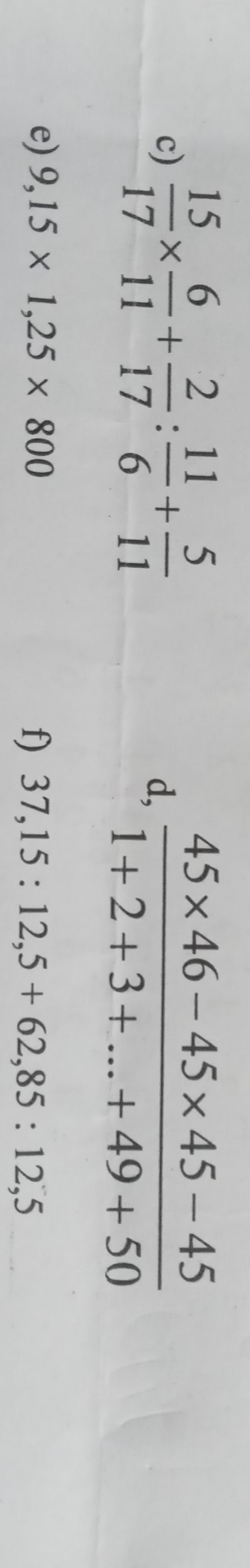 `d)(45xx46 - 45xx45 -45)/(1+2+3+4+....+49+50)`