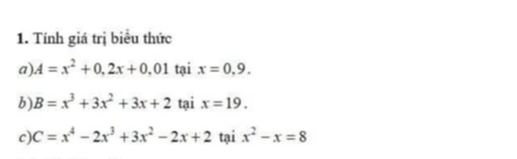 `+)` Thay `x=0,9` vào biểu thức `A` ta được: