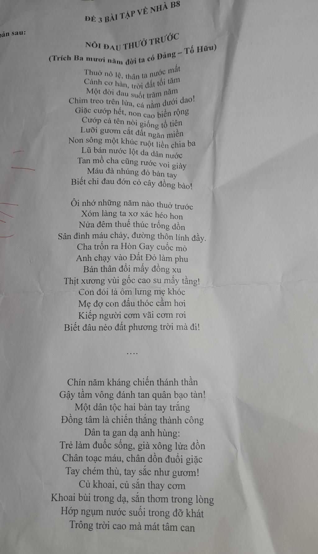 Câu 2: "Nỗi đau thuở trước" đã tái hiện cảnh ngộ nào của đất nước? Hãy phân tích một số biện Pháp nghệ thuật tiêu biểu làm rõ cảnh ngộ đó?