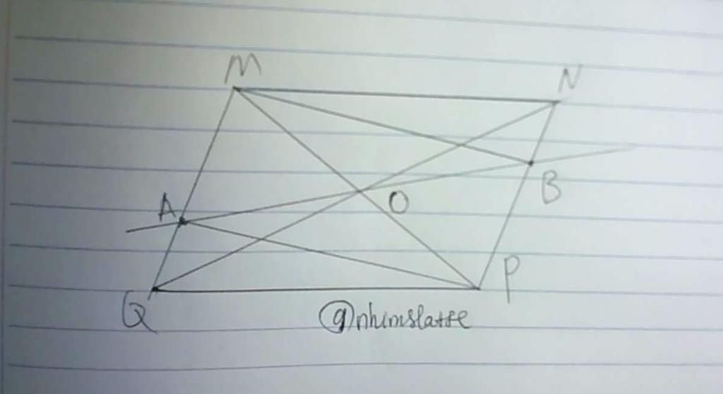Cho hình bình hành MNPQ, hai đường chéo MP và NQ cắt nhau tại O. Đường thẳng d qua O cắt MQ tại A, cắt NP tại B.