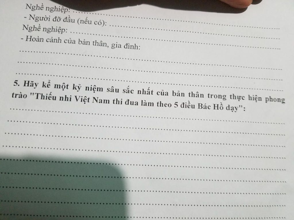 Tôi đã được học 5 điều thiếu nhi từ mầm non,tôi đã làm một việc mà tôi đã được học trong 5 điều thiếu nhi bác hồ dạy.Đó là điều thứ 4 là giữ gìn vệ sinh tốt.Câu chuyện ấy xảy ra với tôi,đúng ngày thứ 5 trong tuần.Lúc đó tôi đi học và đến lớp thì thấy các bạn bảo"nhà vệ sinh bẩn quá....chả có ai dọn...bẩn ghê!!".Tôi nghe vậy iền chạy đi xem,đúng như các bạn nói tôi vội vàng bảo thầy tổng đội cho những bạn tham gia trực nhật phòng vệ sinh ở trường trong đó có tôi.Tôi đi vào phòng vệ sinh mùi hôi thật khó chịu,nhưng các bạn trong đội trực nhật củ trường luôn cố gắng.Tôi dọn vệ sinh có những bạn nam vô ý thúc ném của kính vỡ,tay kháo bị hỏng,chỗ khóa nước trên tép bị hỏng và rò rỉ nước.Chúng tôi ai cũng hoang mang phải làm thế nào,các bạn đã bảo thầy gọi thợ sửa lại và chúng tôi tiếp tục công việc của mình.Nước rất nhiều tận gần chục chậu nước mới hết,có những bạn nam đi xong vệ sinh không chịu xr nước,mùi thối đã dâng lên tận cùng.Ai trong số chúng tôi rất khó chịu,phải cho thêm các bạn nữa vào để dọn hai phòng vệ sinh.Các bạn nam trong đội trực nhật của trường đi dọn phòng vệ sinh nam,còn những bạn nữ dọn phòng vệ sinh nữ.Cuối cùng chúng tôi cũng dọn dẹp xng,ai cũng thấy phấn khởi.Thứ 2 tôi được tuyên dương cùng mấy bạn trong đội,lòng tôi vui sướng tự hào khi mình đã hoàn thành một trong những 5 điều bác hồ dạy.