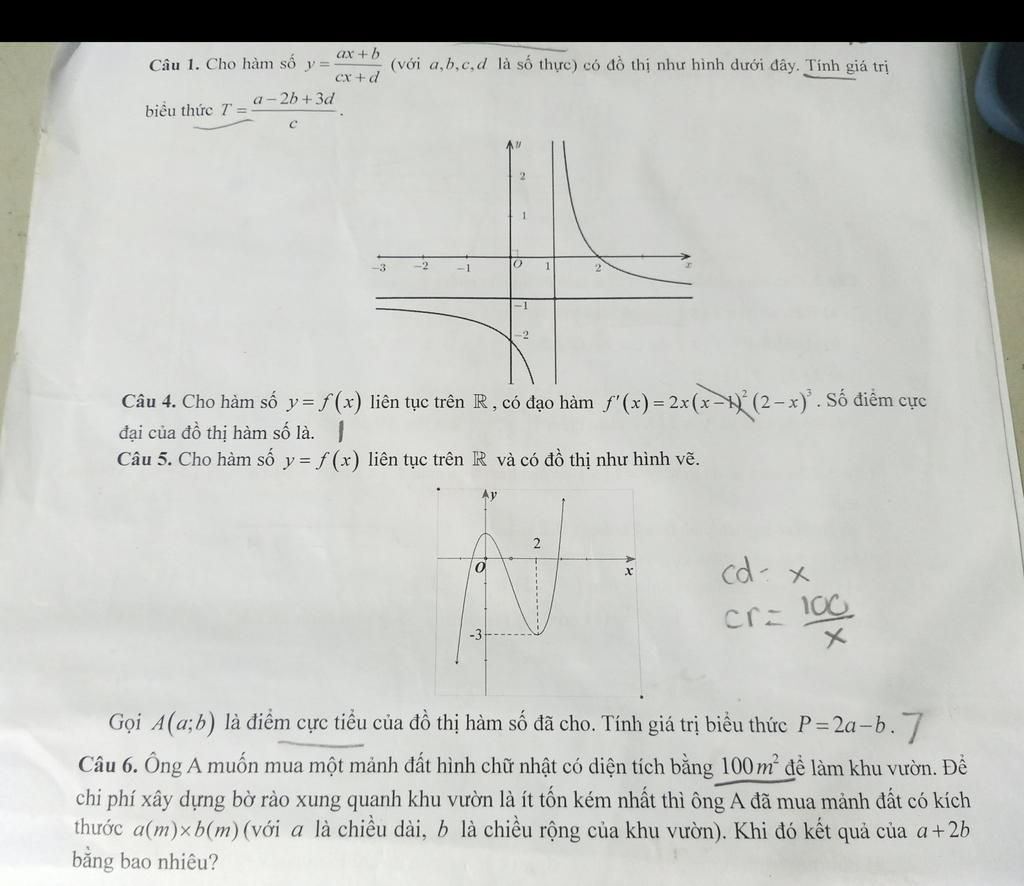 Tiệm cận đứng: `x=1=-d/c=> d=-c`