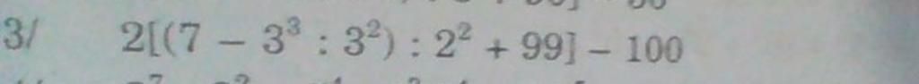 ` 3 ``/` ` 2[ ( 7 - 3^3 : 3^2 ) : 2^2 + 99 ] - 100 `