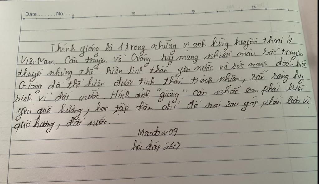 Thánh Gióng là vị anh hùng chống giặc ngoại xâm mà em vô cùng khâm phục.