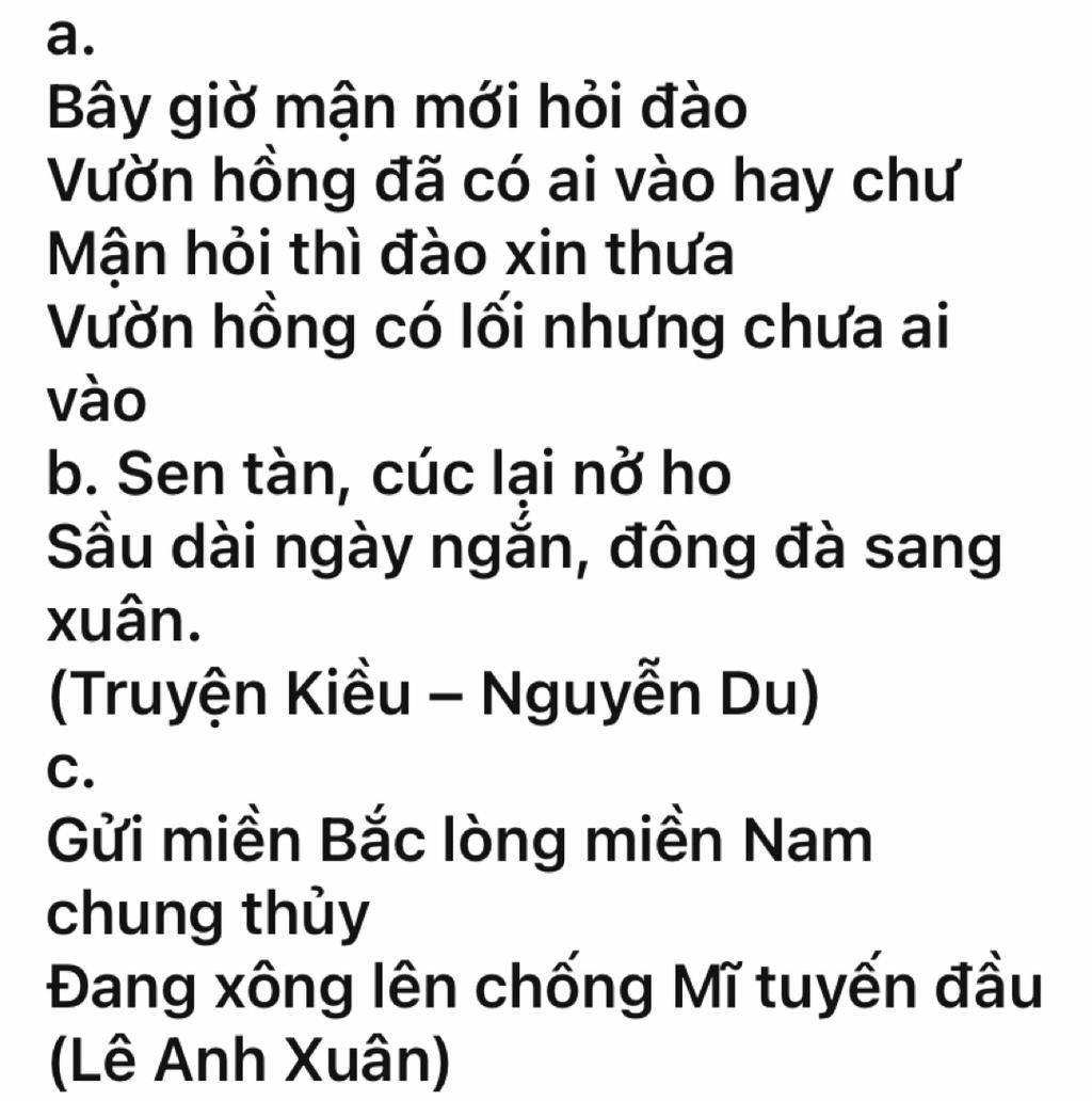 - Hoán dụ: "Sen tàn, cúc nở" - chỉ sự thay đổi của thời gian, mùa vụ.