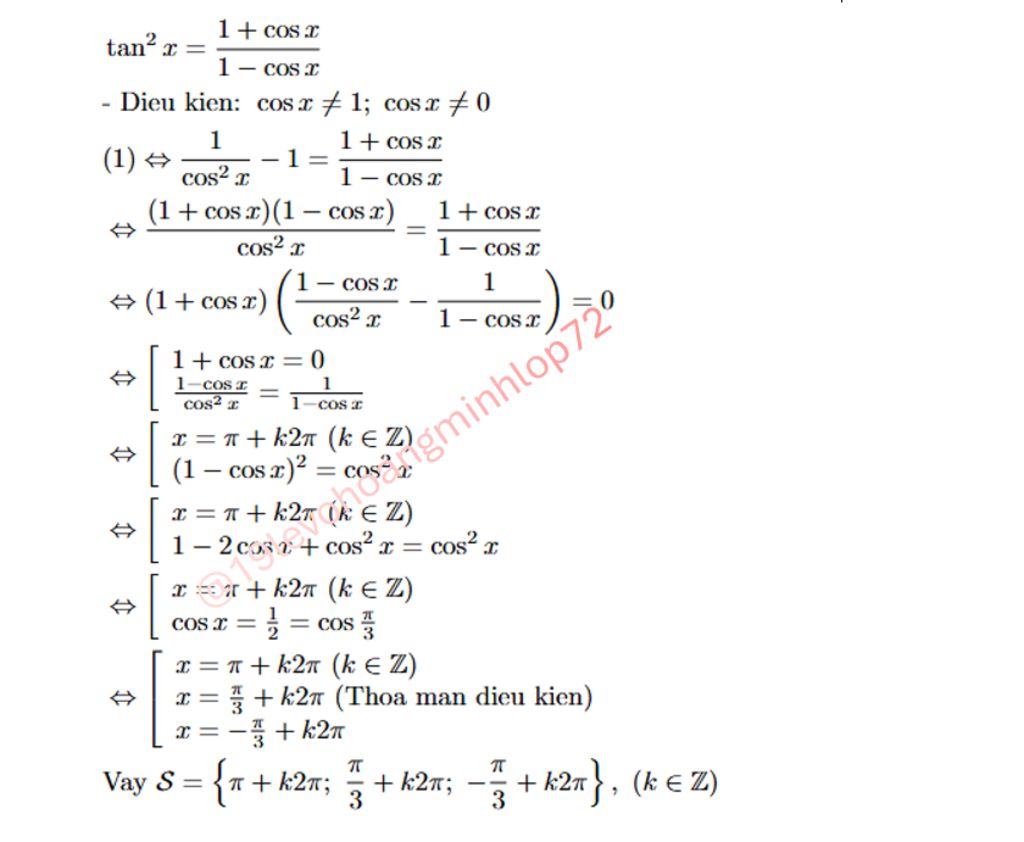 giải thích sử dụng công thức nghiệm và hằng đẳng thức: `1+tan^2x=1/(cos^2x)`