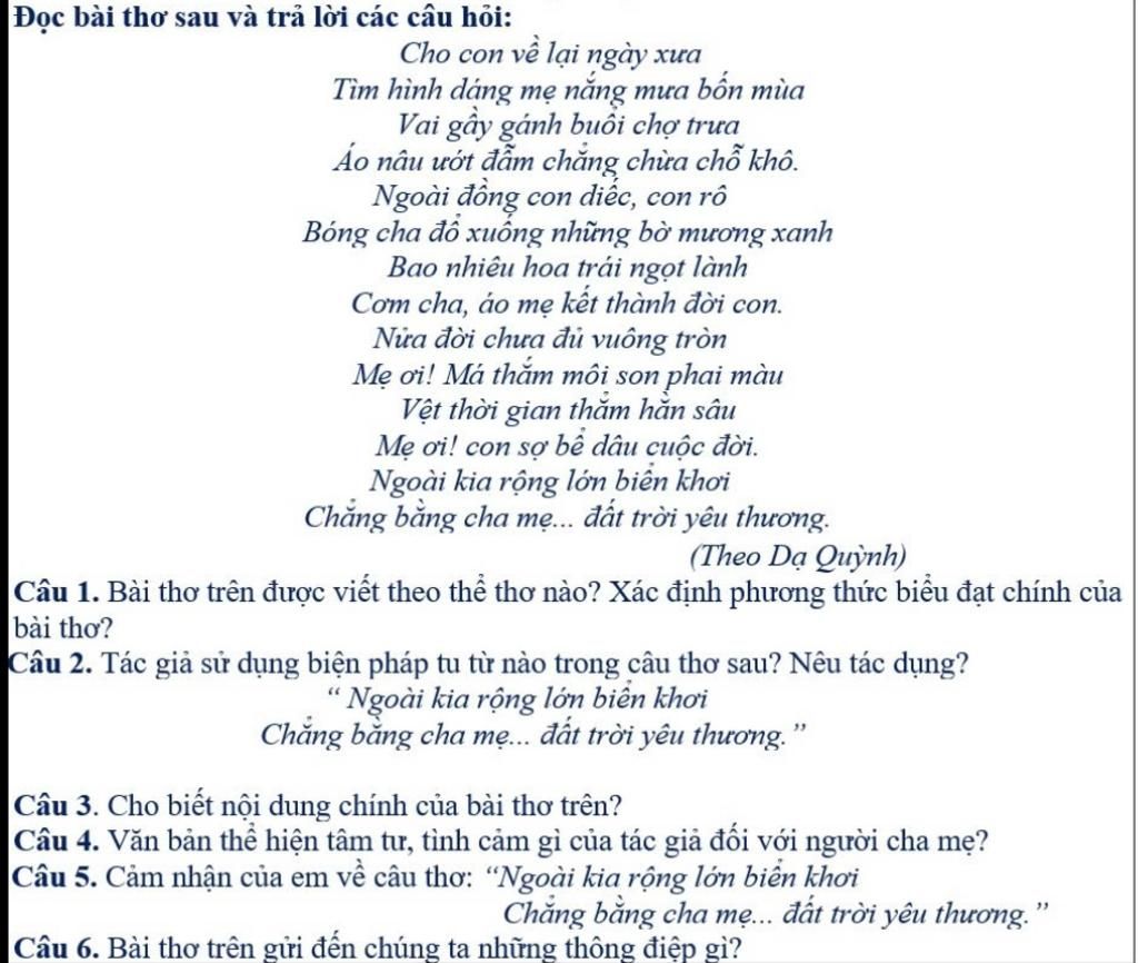 `+` Thể hiện được tình yêu thương và sự biết ơn của tác giả với đáng sinh thành của mình.