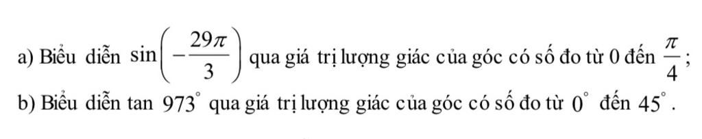 `a) sin( -(29pi)/3) = sin(-10pi + pi/3) = sin\ pi/3 = cos(pi/2 - pi/3) = cos\ pi/6`