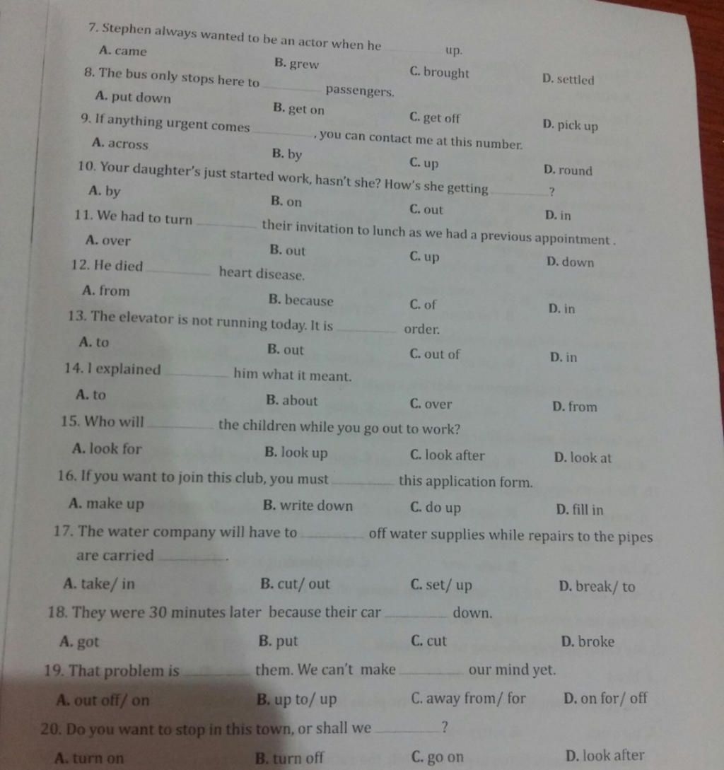 A. put down