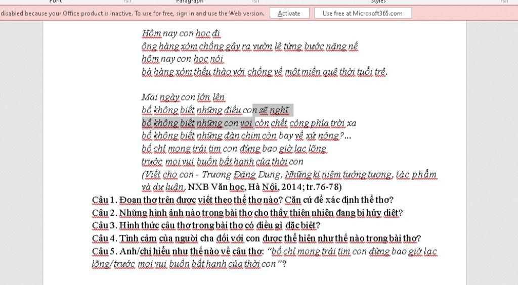 // Thể thơ : Thơ tự do (thơ không vần, không theo một số câu hay một sự chữ nhất định trong mỗi dòng)