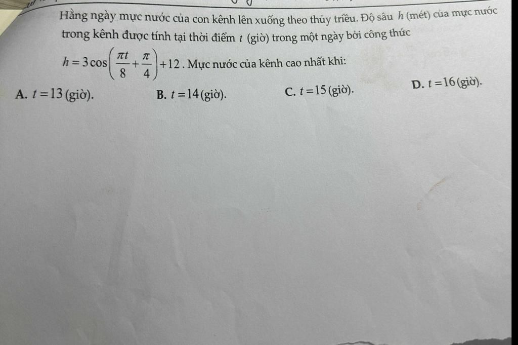 Vậy mực nước của kênh cao nhất là `h = 15m` tại