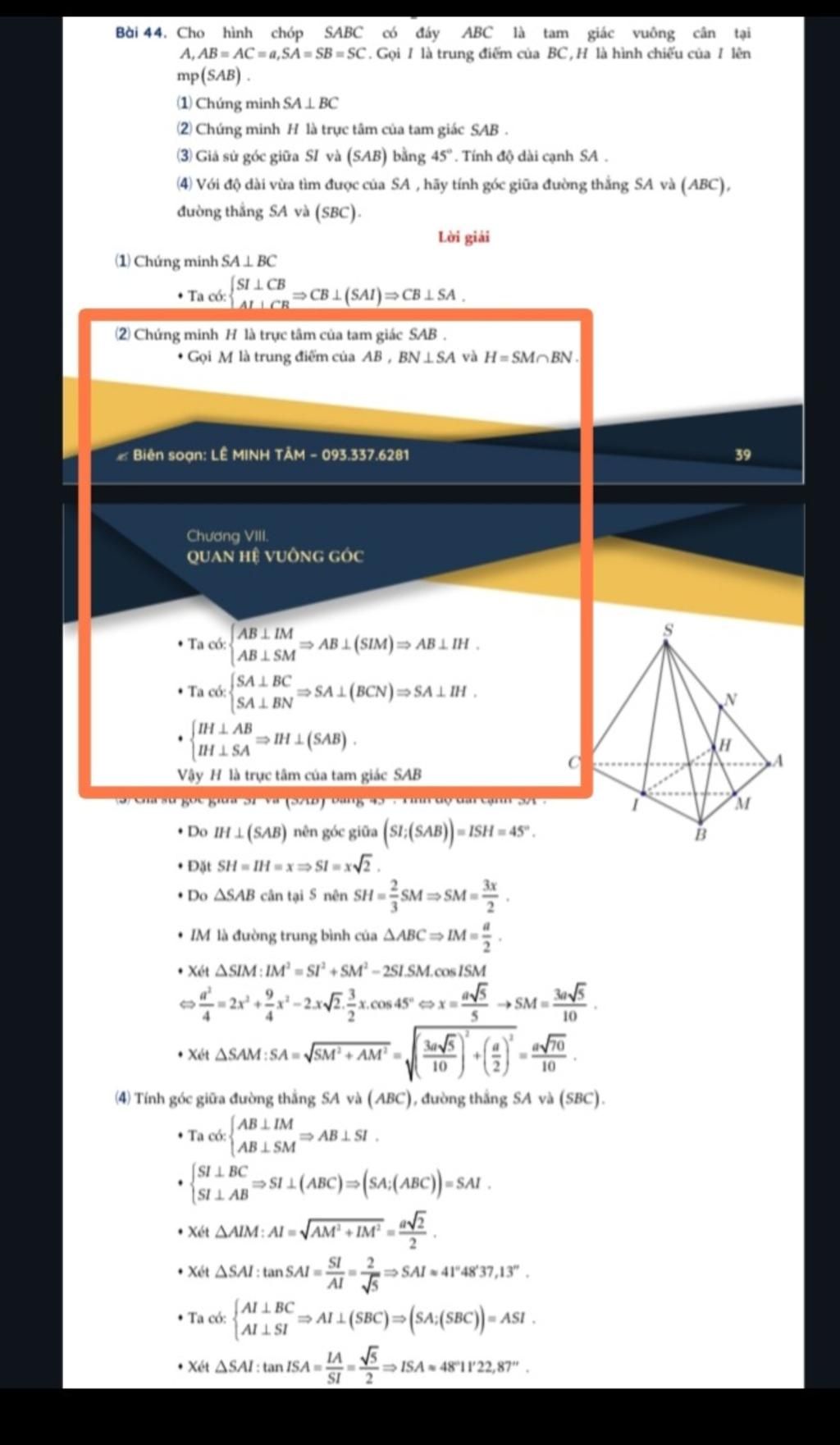 Bài 44. Cho hình chóp SABC có đáy ABC là tam giác vuông cân tại