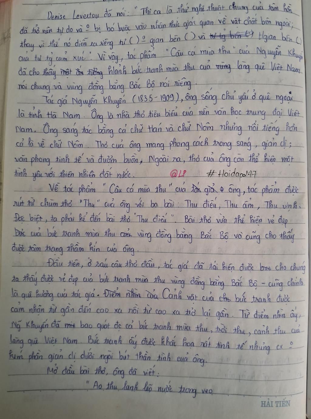 Viết bài văn phân tích bài thơ thu điếu của Nguyễn Khuyến