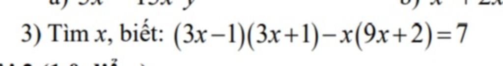 `(3x-1)(3x+1) - x(9x+2) = 7`