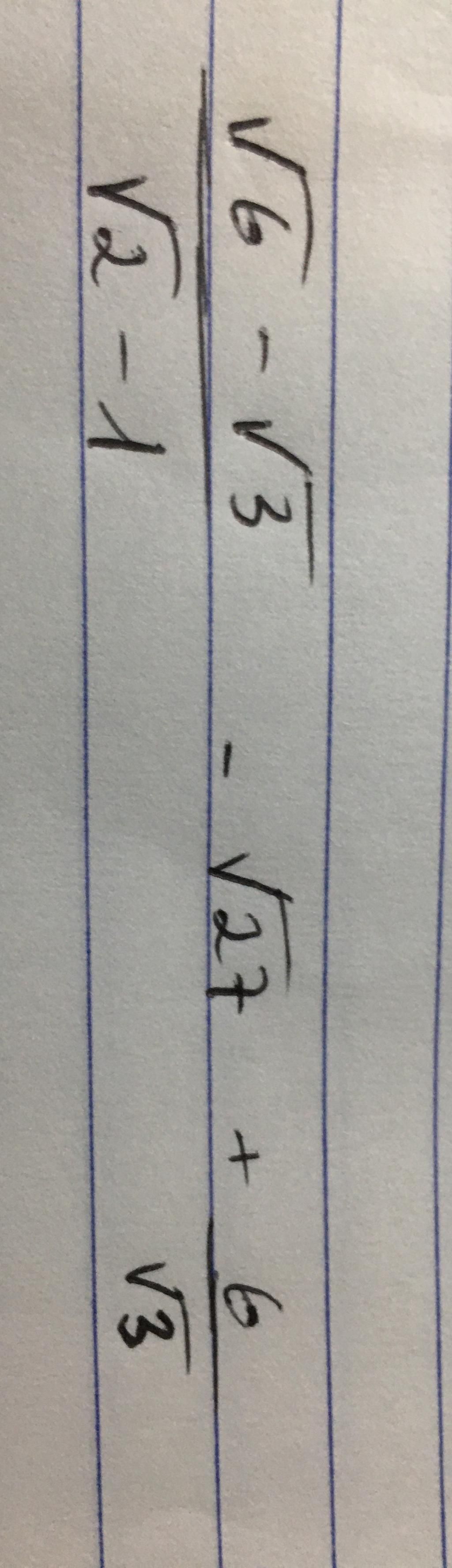 ` A = (sqrt{6} - sqrt{3})/(sqrt{2}-1) - sqrt{27} + 6/(sqrt{3}) `